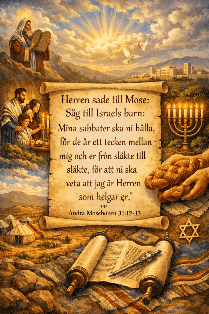 ”Säg till Israels barn: Mina sabbater ska ni hålla, för de är ett tecken mellan mig och er från släkte till släkte, för att ni ska veta att jag är Herren som helgar er.”
