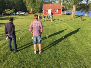 Sen fick vinnarskallen i oss bekänna färg i kubb-spelets virvlande utkast. Höga som låga kast var ömsom ett vinnarslag och ömsom helt felriktade. Min ödmjukhet hindrar mig att berätta vilket lag som vann 2 av tre matcher.