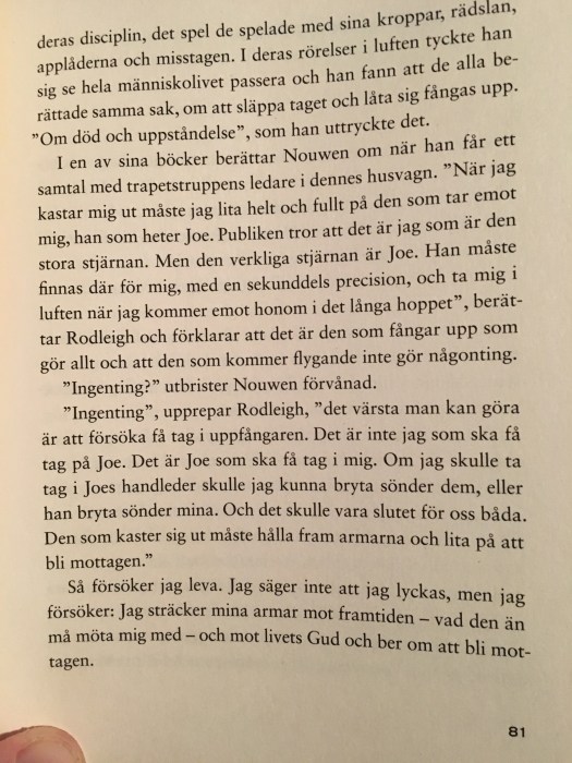 Läste något så bra som talar om att slänga sig ut och bli uppfångad av Gud. Det är då livet funkar tänker jag.