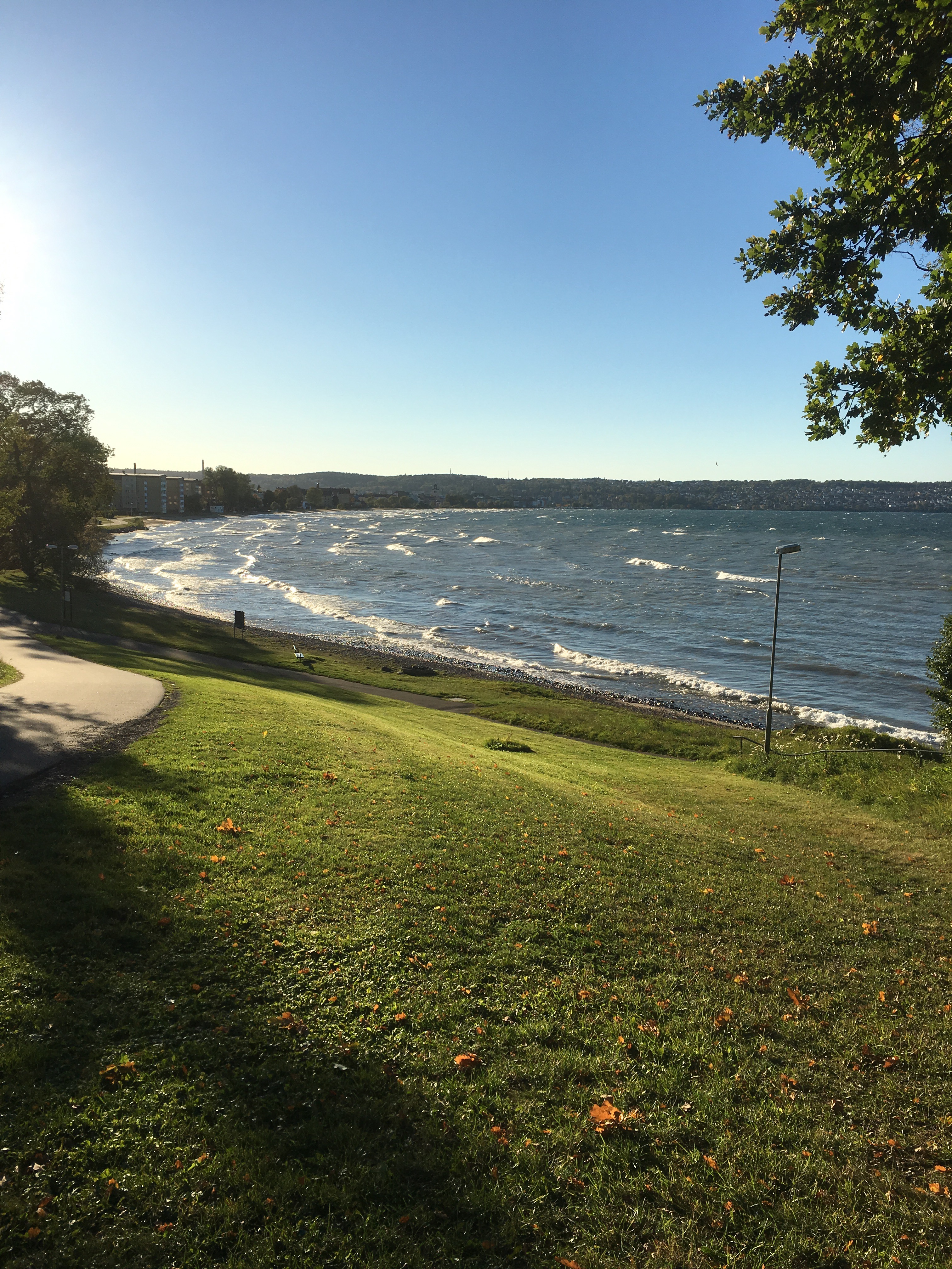 Vättern hade så starka vindar norr ifrån att det gick rätt stora vågor mot stranden. Askersund måste ha haft dåligt med vatten på grund av det.
