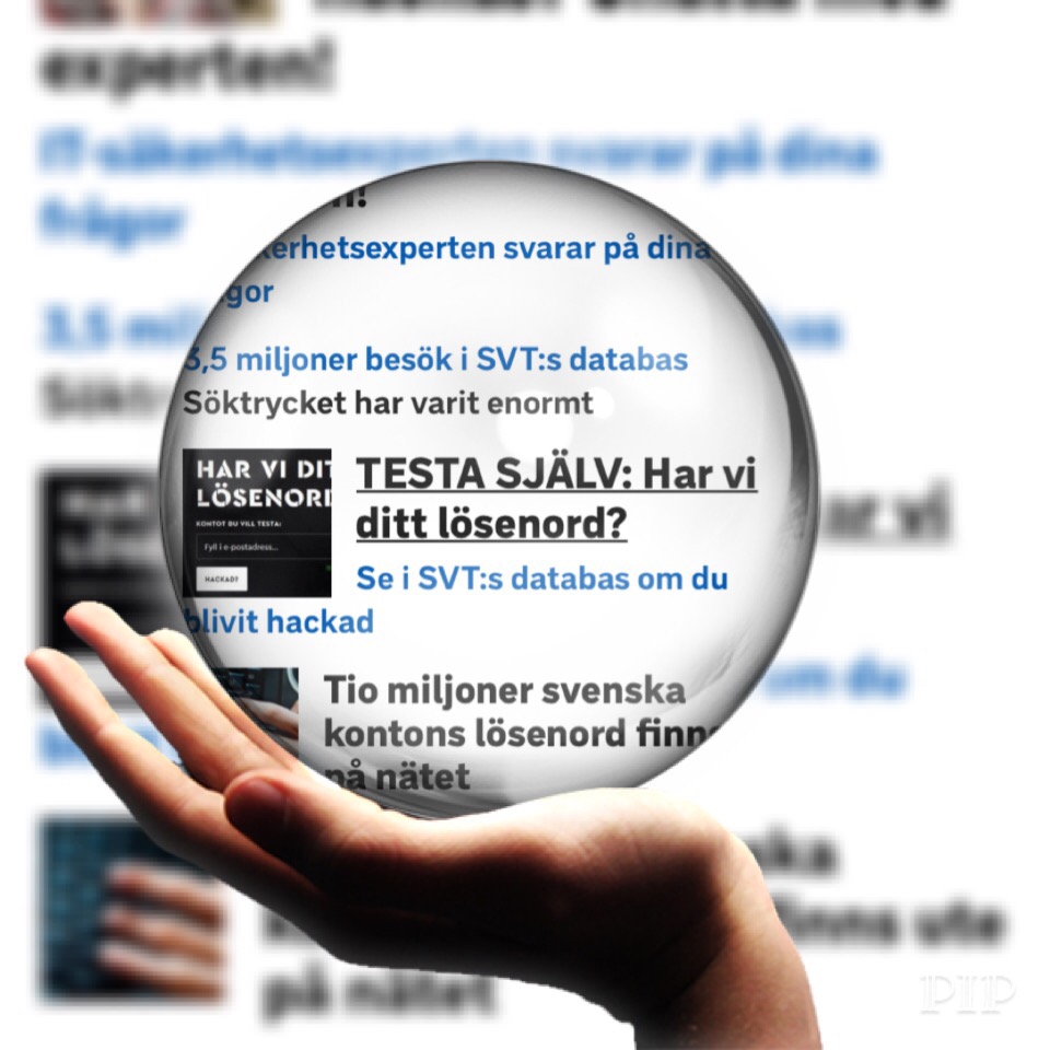 Så läser man att om man är orolig så kan man testa om sitt lösenord är kapat. Lite kul är att då skall man uppge sin mail. Så skall man på det viset få veta hur det ligger till. Men hur säker är man att man inte blir lurad genom att just göra så? Flera ställen på nätet kan man göra det. När SVTnyheter.se uppgav att man kunde kolla det så kände jagmug mer trygg att våga testa. För tänk annars om just den sidan blivit hackad så får man ett virus in i sin dator eller mobil och så är det kört den vägen.