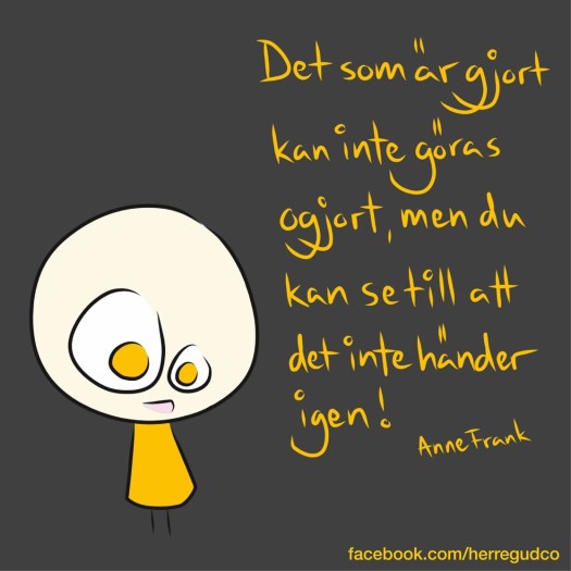 Anne Frank har en poäng. Vi ska inte göra samma misstag igen. Utan gå vidare med tanken att inte göra om misstaget. Men vi måste gå vidare. I tro på att det kommer bli bättre nästa gång.