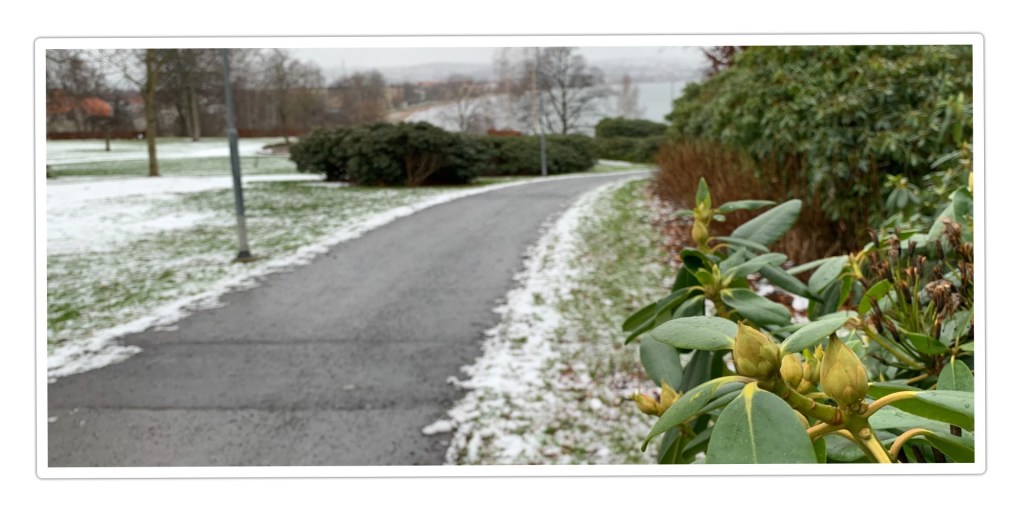 En plats jag ofta och gärna besöker är Rosariet som ligger nära intill för jag bor. Just nu ligger det i vila kan man säga. Rosorna är nedklippta och väntar på värmen för att skjuta nya skott i. En byggnad är under en renovering. Den lilla snö som just nu finns påminner om att det är vinter och viloperiod i växtriket.