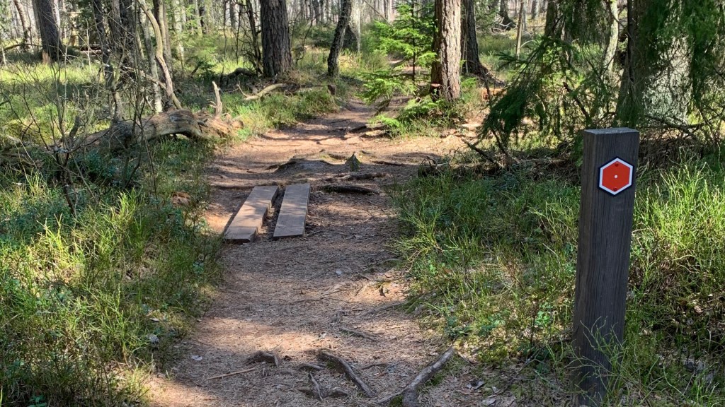Vandrade runt Store Mosse. Leden var uppmärkt med röd markering. Så i det stora hela var det lätt att förstå vart man skulle gå. Problemet blev när en markering var borta eller inte sats upp. Då inser man hur sårbart det är. Man vill följa den utmärkta leden men så saknas märkningen. Genast tvekar man.