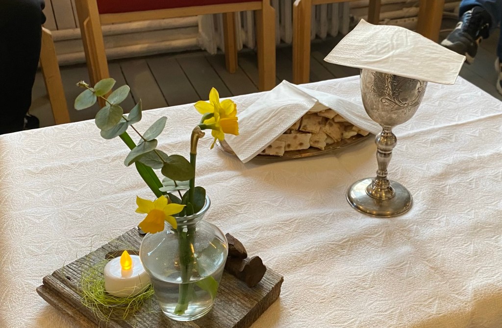 Daniel hade satt samman en plan för kvällen. Vi fick läsa olika texter om kvällen då Jesus var i Getsemane. Sjunga olika sånger. Att därtill få dela nattvardsgemenskap blir något alldeles särskilt.