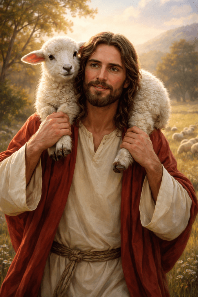 Ett får leds av sin Herde. Fåret vet att om den gör det så får den vatten, gott bete och beskydd. Herden har sin stav som kan lyfta upp det när det ramat ner i en skreva. Herden har sin klubba, eller slunga, att slänga mot rovdjuret. Herden har koll på vart den bästa ängen finns. Herden vet vart fåret kan släcka sin törst.