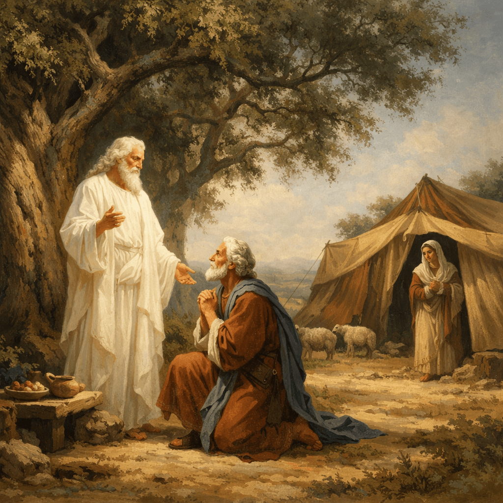 Abraham hade fått löftet om att han skulle bli ett stort folk. Men han och Sara var gamla. Nu kom Gud till Abraham för att fortsätta denna profetia till honom. Han ger löftet till Abraham att nästa år ”vid denna tid” skall hans hustru Sara fått en son.