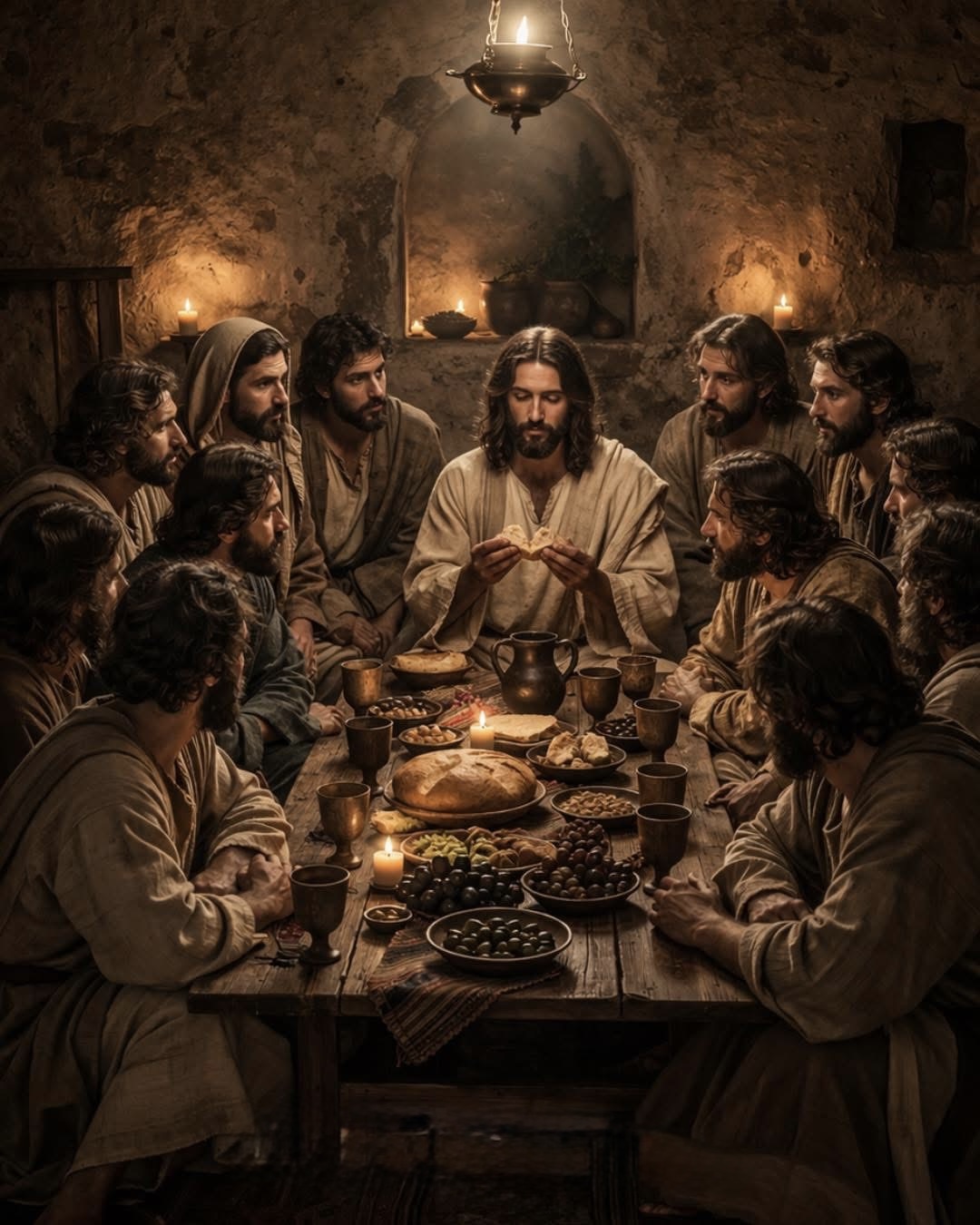 Så delar de bordet och bägaren mellan sig. Efter den måltiden går de ut till Getsemane där Jesus kämpar sin kamp.