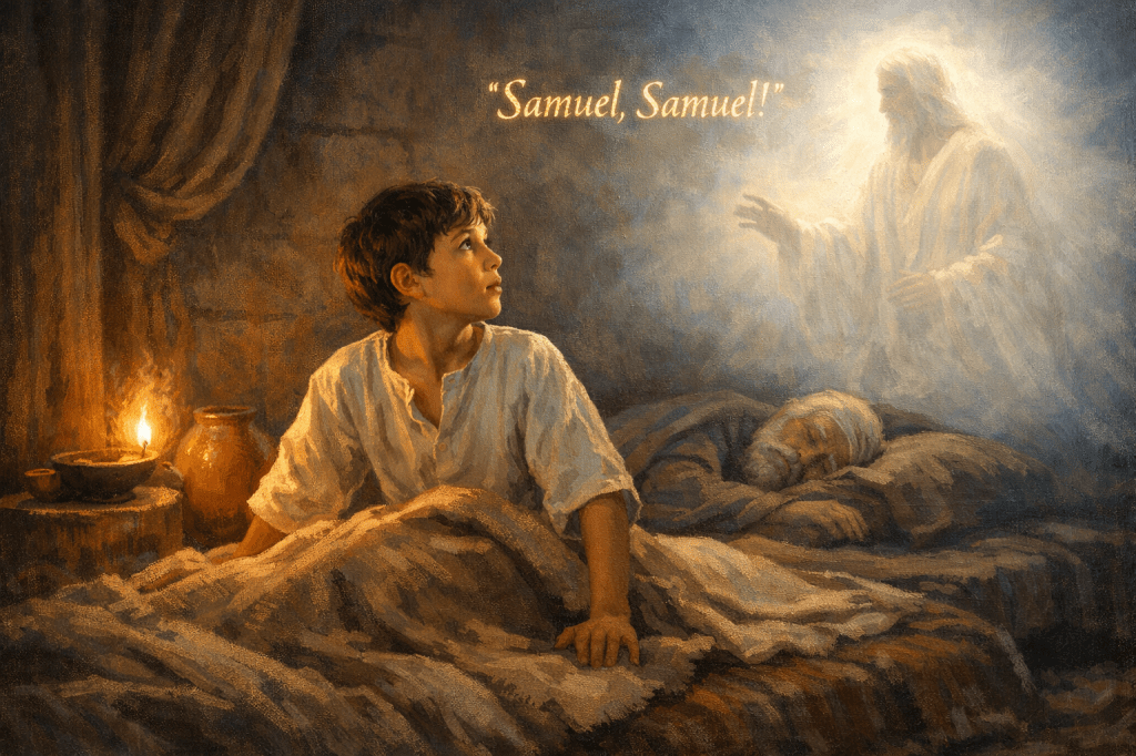 En natt när Samuel sover hör han Eli ropa på honom. Han skyndar dit. Men Eli sov. Han går och lägger sig igen. Detta sker ännu en gång med samma resultat och en tredje gång. Då förstod Eli vem som ropade på Samuel. Eli lärde honom hur han skulle svara: ”Tala Herre, din tjänare hör” nästa gång Gud kallade på honom. Och så blev det. Och Herren började tala till Samuel om sådant Gud ville gör och vad som skulle hända.