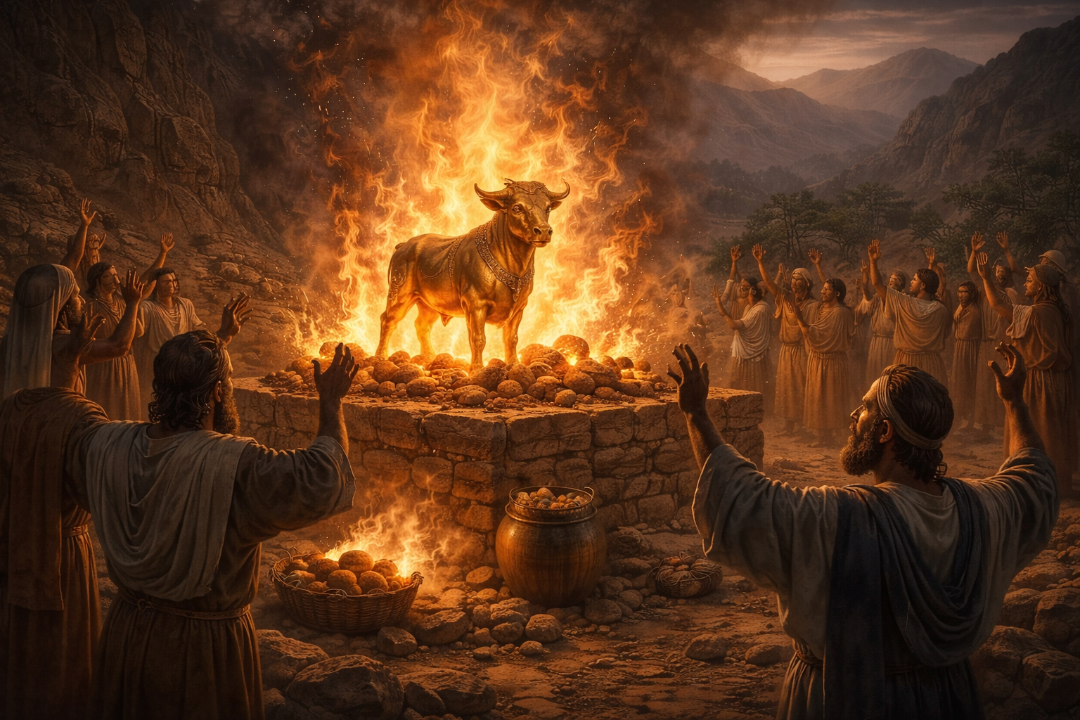 Det är också som att folket vill säkra upp läget. ”Om en gud inte svarar så har vi flera att tillgå” – typ så. Som att tilliten till den levande Gud, den som räddat dom från Farao, som skapade himmel och jord, sviktade och tvivlet fanns där.