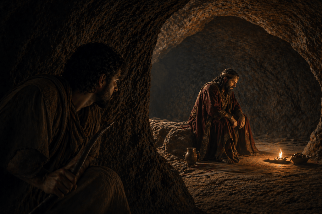 Detta är en del i Davids hjärta. Han blir uppmuntrad att göra slut på Saul men väljer att inte göra det. Och man ser att det visade sig vara välsignat av Gud. Bibeln säger: