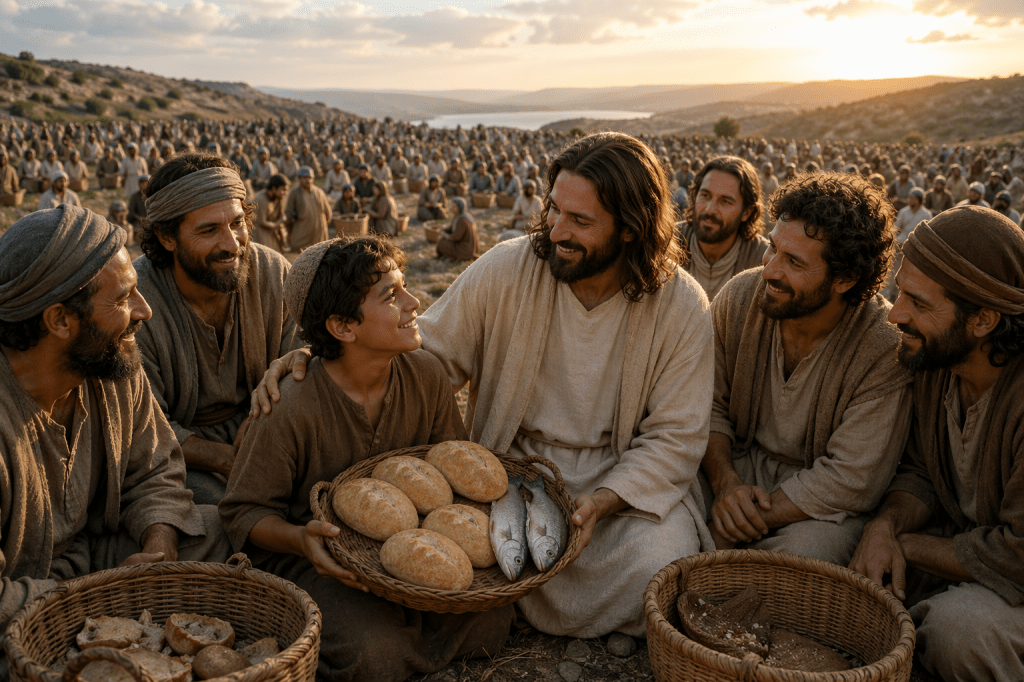Vad har du att dela med dig av? Vilken gåva är du bärare av? Vad är din talang? Vad brinner du för? Det kan Gud välsigna och använda. Det kan se litet ut men Jesus kan göra något stort av det.  Det kan förslå långt i rätt händer.