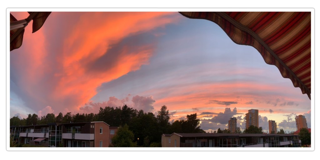 Men jag får erkänna. Dagen blev inte så dålig. Visst, det kom lite regn under dagen. Men i stora hela var vädret varmt och gott. Skogsturen blev också rätt bra faktiskt. Kvällen avslutades med att sitta på balkongen rätt länge. En sådan där ljummen kväll med vacker himmel.