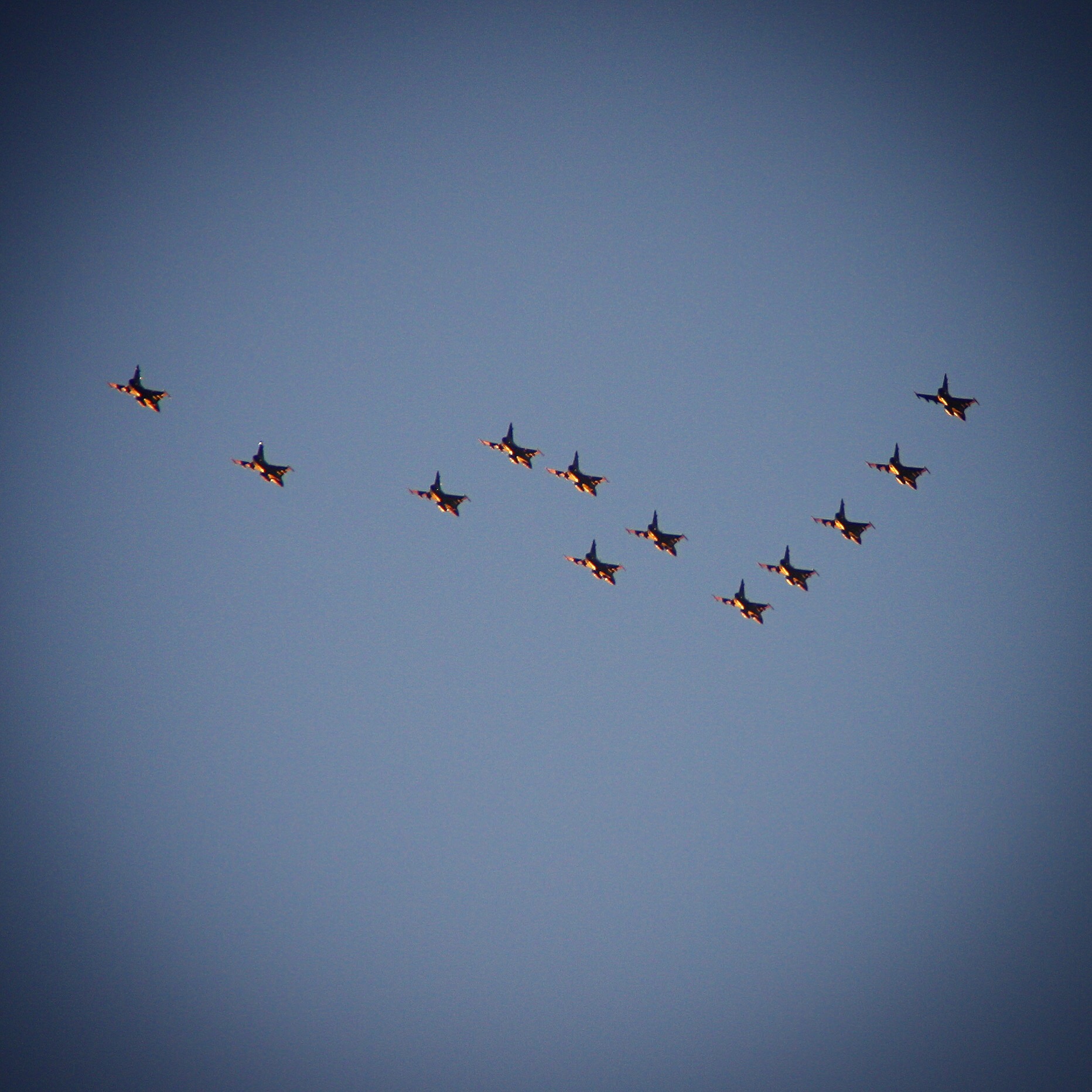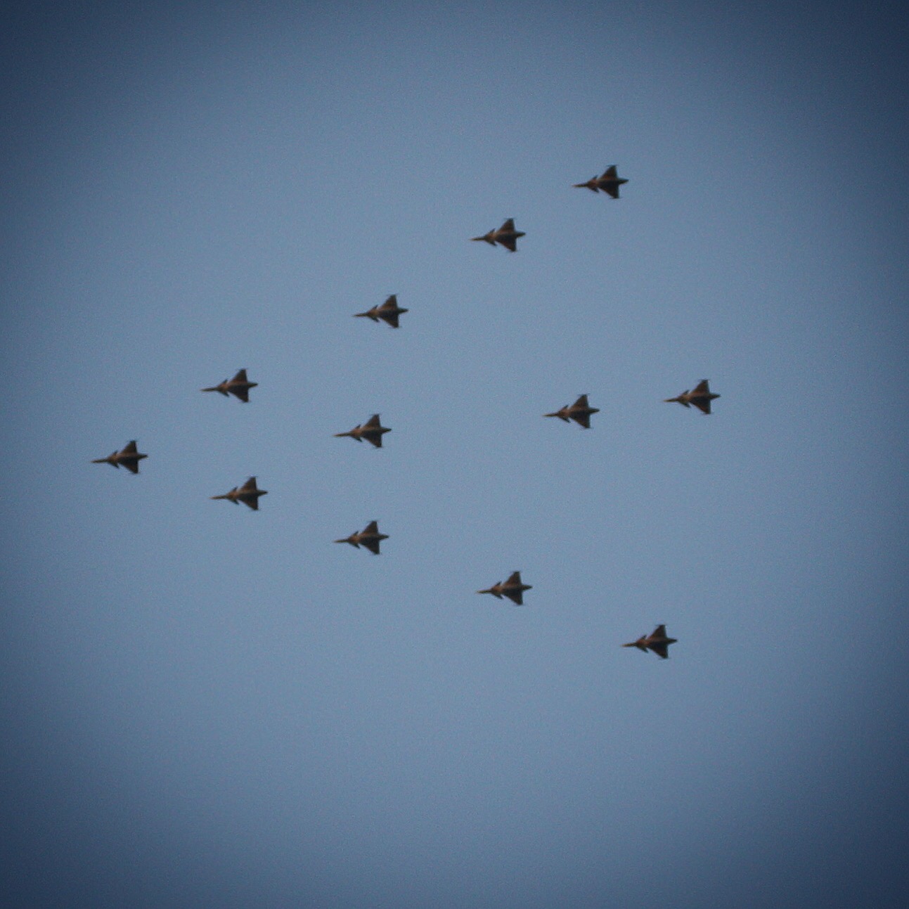 I går kl typ 14:49 flög 12 st jas-plan i formation över Jönköping. Dom skulle komma mellan Visingsö och Gränna. Men dom lurade oss alla som stod på Vätterstranden och spanade mot Visingsö.