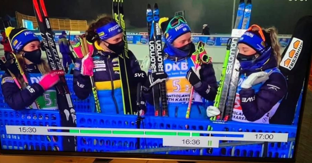Till detta blev jag så överraskad av att lagen från olika länder hjälpte varandra mitt i tävlingen. När någons stav gick av hjälpte man till med en ny stav. Även om det var den som var den ”värsta” motståndaren. För det var så man brukade göra i skidskytte sa kommentatorn. Det är stort tänker jag.