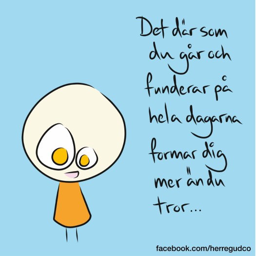”Det där som du går och funderar på hela dagarna formar dig mer än du tror…. ” Alltså om det är sant är det ju lite knepigt.