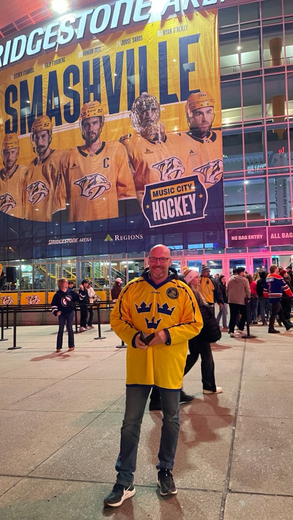 Ja, han är i Stockholm och lirar hockey med sitt lag Nashville predators. Sist jag såg honom var i Nashville. Då vann dom helt klart mot Jets. Två matcher i Globen….. ja, den heter väl något annat men Globen lär den alltid heta.
