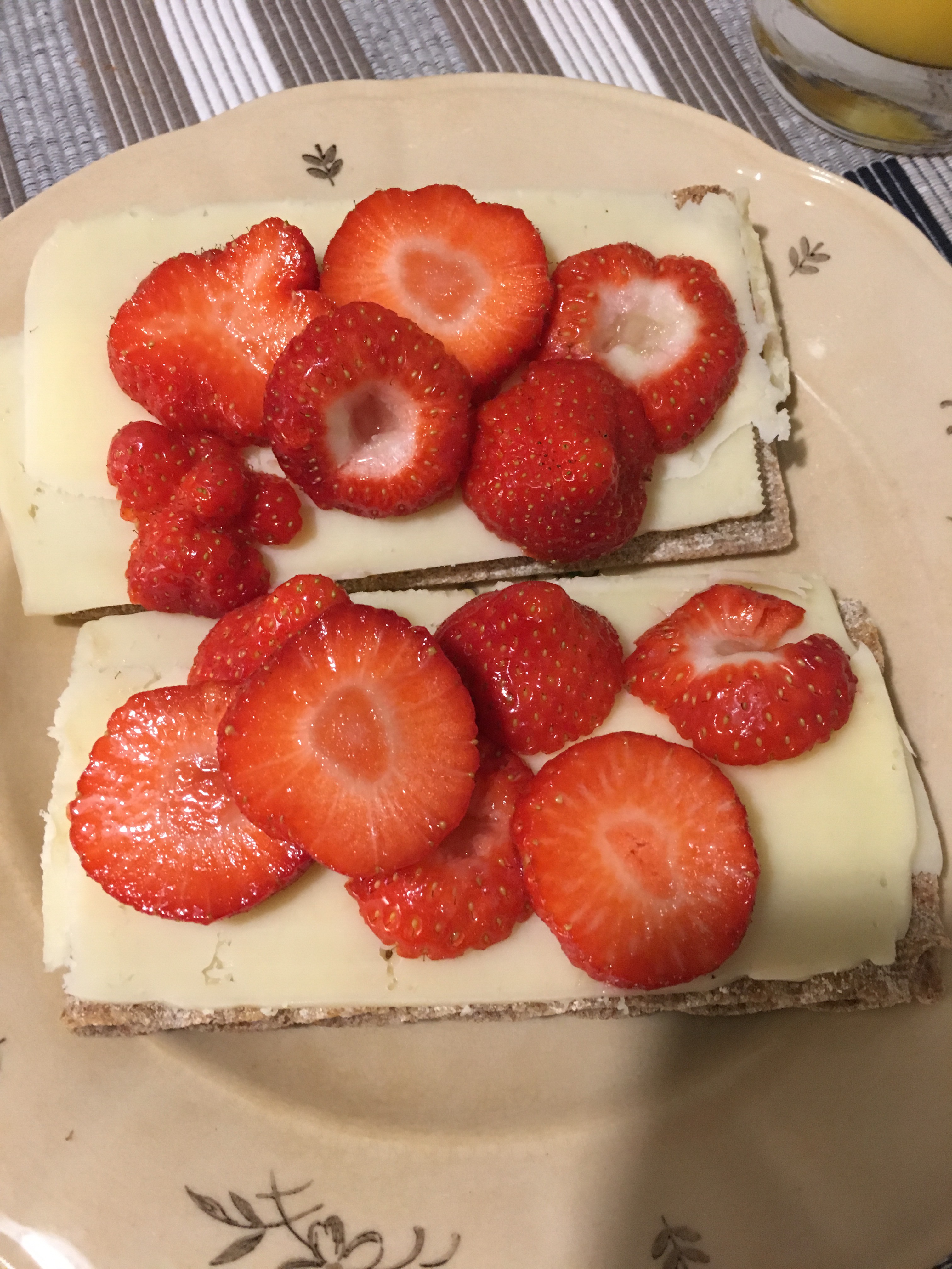 Igår kväll var det med några knäckemackor med ost och jordgubbar på. (Ja, det blev någon eller några plopp också om jag ska vara ärlig)