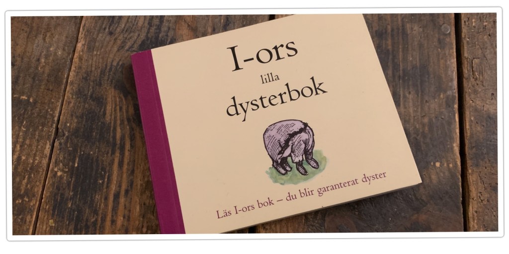 Hittade denna lilla bok när jag rensade lådor. I-ORD lilla dysterbok. ”Läs I-ors bok – du blir garanterat dyster”. Denna bok kanske borde förpassas till papperskorgen.