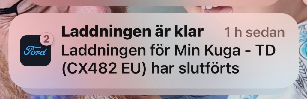 När jag kommer hem sätter jag i sladden för att ladda batteriet igen. Så när det gott en tid får jag följande meddelande på min mobil