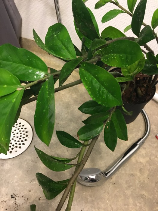 Under helgen tvättade jag mina fönster. Såg att mina blommor behövde en dusch. Deras blad hade en yta av damm. Vilken lyster dessa blad fick efter lite vatten. Tänker att ett blad behöver lite regn ibland för att rena sina blad. Så kan dom lättare ta emot solens strålar.