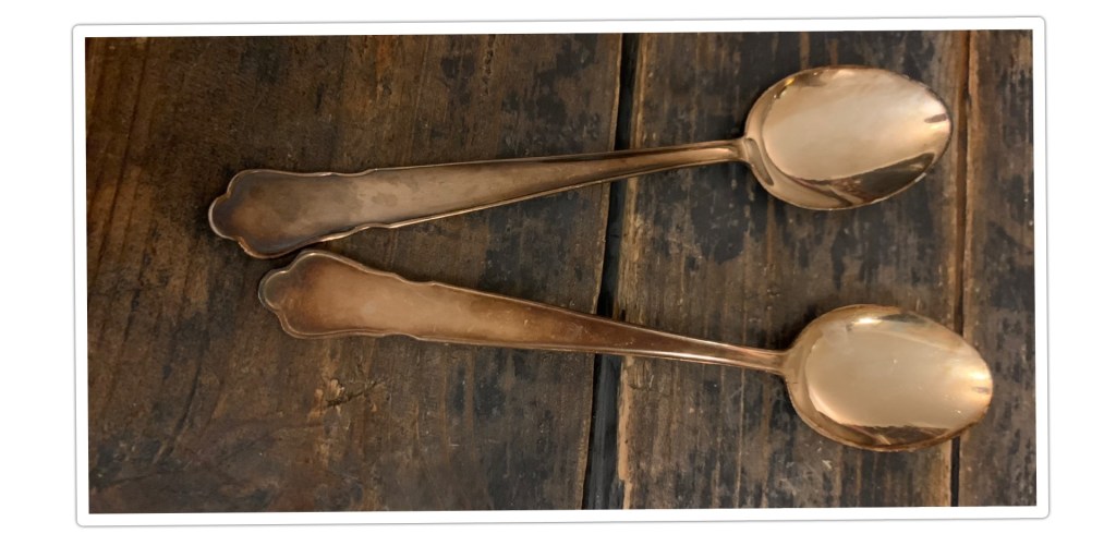 Du har nog sett dom förut. Mina silverskedar. Med jämna mellanrum behövs dom putsas. Dom blir ju rätt fula med tiden. Användandet och diskandet gör att dom svartnar. Men då finns det ett botemedel. Silverputs. Tur man har det , eller hur?