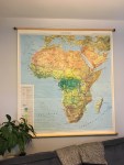 För några år sedan så jobbade jag på Erikshjälpen i Örebro. Vi får ju in massa olika saker. En dag får vi in en gammal skolkarta med Afrikamotiv. Jag visste att min äldste son ville ha en sådan. Och han köpte den. Sen dess (lika bra att erkänna det) har jag varit lite avundsjuk på honom att han har en sådan. Så jag har gått och drömt om att hitta en liknande. För han ville ju inte sälja den till mig.
