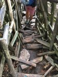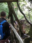 Sista biten var en trappa. Där var det trångt ner. Men trots att det såg ostadigt ut var det väl byggt. Det gick väl bra om alla gick åt samma håll. Men att mötas var en utmaning med ryggsäcken på.