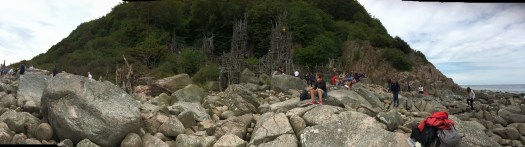 Jag sitter vid Nimis. Lars Vilks konstverk. Hade jag vetat om den branta vägen dit hade jag nog avstått. Men det var en upplevelse.