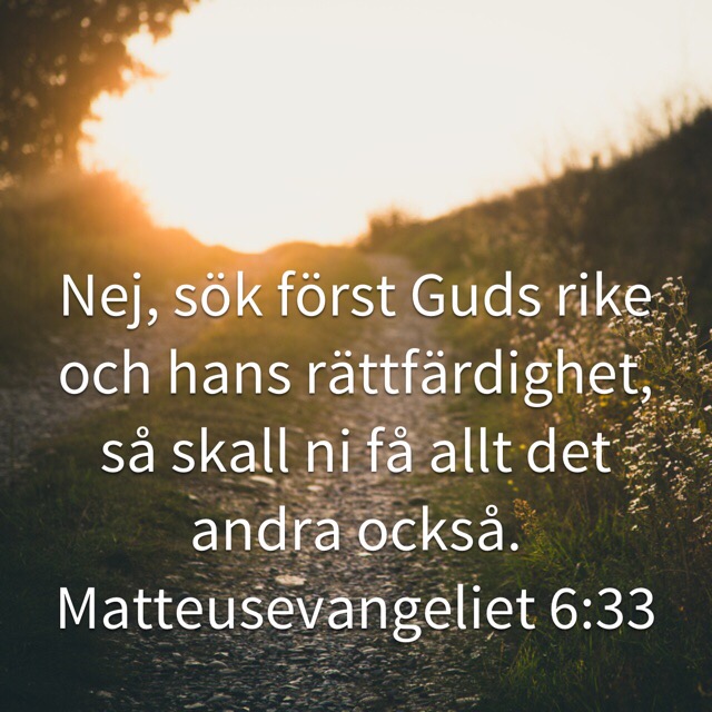 Nej, sök först Guds rike och hans rättfärdighet, så skall ni få allt det andra också. Matteusevangeliet 6:33