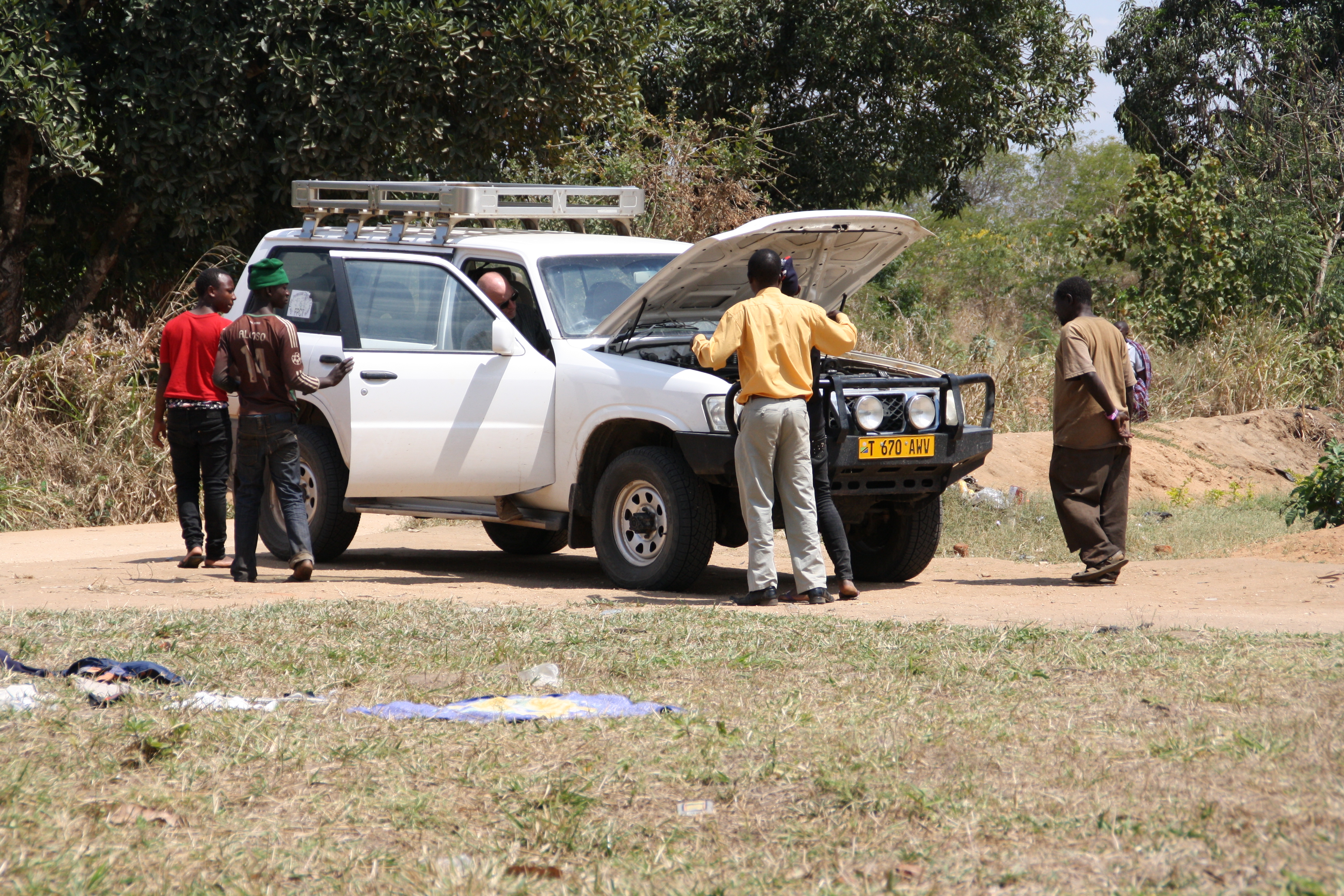 Nu hade vi bara en gång ett problem med bilen. Vi skulle stanna för att köpa dricka. Då behagade inte bilen att vilja starta. Man menar att man är bara två samtal bort till hjälp i Tanzania. Och det verkar vara väldigt sant. Man har inte råd att vara ovän med någon. För man kan behöva ha hjälp själv. Så ganska snart hade vi hjälp. Det visade sig att vi fick skjuta igång den. Då var det bra med några fler som kunde hjälpa till. Den dagen stängde vi inte av bilen något met förrän till kvällen.