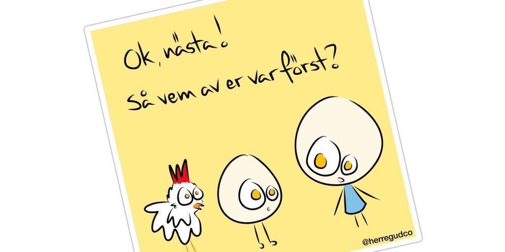 Det är ju rätt viktiga frågor i dessa dagar …. eller inte. Men ändå. Den blottlägger något djupare trots allt. Det blir rätt omöjligt att svara på frågan om hönan kom före ägget eller tvärt om.