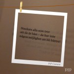 Hur kommer det sig att någon att tro att man är bäst? Möjligen i ett smalt område kan någon enstaka titulera sig ‘bästa’. För rent tekniskt kan det bara vara en åt gången som är bäst. Ok, lagsport är det hela laget, jag vet, men om man ser individuellt alltså. Men det är bara en som kan vara bäst på någonting.