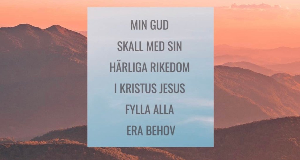 Texten i Filipperbrevet 4:19 är i första anblick oerhört generös. Känner att jag läste egentligen typ ”fylla allt jag vill ha”. Att allt det jag både önskar och ”kräver” att få ska han ge.