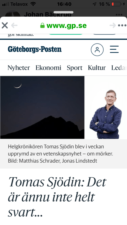 Man har uppfunnit något som är i det närmaste helt svart. Ja, man menar att det är helt svart. Men ändå är det inte helt svart. Tomas Sjödin fortsätter att skriva: