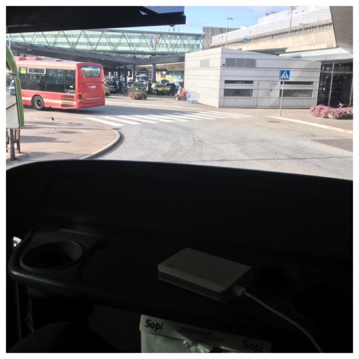 Nu är vi på bussen. Dags att ta oss till Arlanda.