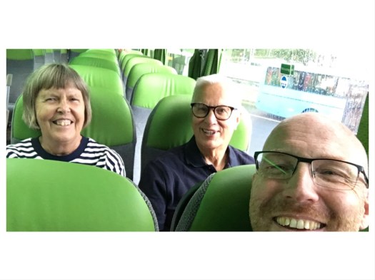 Nu är vi verkligen på gång…. nja…. bussen ca 1 timme försenad. Men vi är glada för det